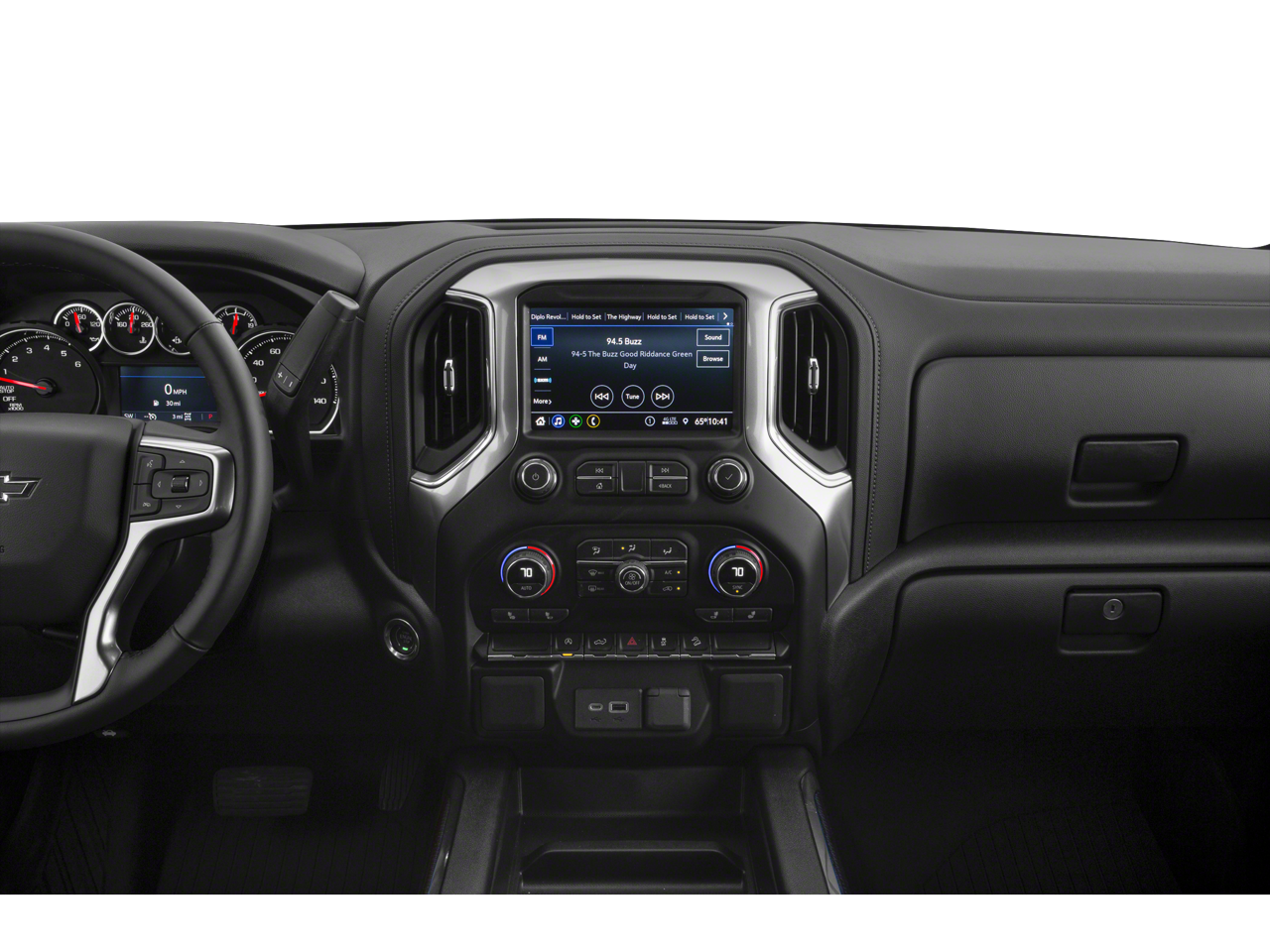 includes (UG1) Universal Home Remote, (A48) rear sliding power window, (KI4) 120-volt power outlet, (KC9) 120-volt bed-mounted power outlet, (IOS) Chevrolet Infotainment System with 8" diagonal color touch-screen with (MCR) USB ports, SiriusXM with 360L and (UVB) HD Rear Vision Camera Includes (UQA) Bose Premium Sound System. (dealer-installed), includes (UD5) Front and Rear Park Assist, (UKC) Lane Change Alert with Side Blind Zone Alert and (UFG) Rear Cross Traffic Alert (Vehicles built prior to 12-20-2021 include Front and Rear Park Assist. Certain vehicles built on or after 12-20-2021, will be forced to include (00Z) Not Equipped with Front and Rear Park Assist, which removes Front and Rear Park Assist. See dealer for details or the window label for the features on a specific vehicle. Includes Perimeter Lighting. includes (B1J) wheel house liners and (CGN) Chevytec spray-on bedliner, WHEELS, 20" X 9" (50.8 CM X 22.9 CM) HIGH GLOSS BLACK PAINTED ALUMINUM, includes (PZ8) Hitch Guidance with Hitch View, (U1D) Advanced Trailering System and (JL1) trailer brake controller, 8" diagonal HD color touchscreen, AM/FM stereo, Bluetooth® audio streaming for 2 active devices, wireless Apple CarPlay® and Android Auto® capable, voice recognition, in-vehicle apps, cloud connected personalization for select infotainment and vehicle settings. Subscription required for enhanced and connected services after trial period. (355 hp [265 kW] @ 5600 rpm, 383 lb-ft of torque [518 Nm] @ 4100 rpm); featuring available Dynamic Fuel Management that enables the engine to operate in 17 different patterns between 2 and 8 cylinders, depending on demand, to optimize power delivery and efficiency (STD), with overdrive and tow/haul mode. Includes Cruise Grade Braking and Powertrain Grade Braking (STD) (Vehicles built with a V8 engine and (MQB) 10-speed automatic transmission will have (NSS) Not Equipped with Automatic Stop/Start, which removes Automatic Stop/Start and its content.), 60/40 folding bench for Crew Cab models, includes full-length bench seat, seatback storage on left and right side, center fold out armrest with 2 cupholders, full cab width underseat storage, (includes child seat top tether anchor).